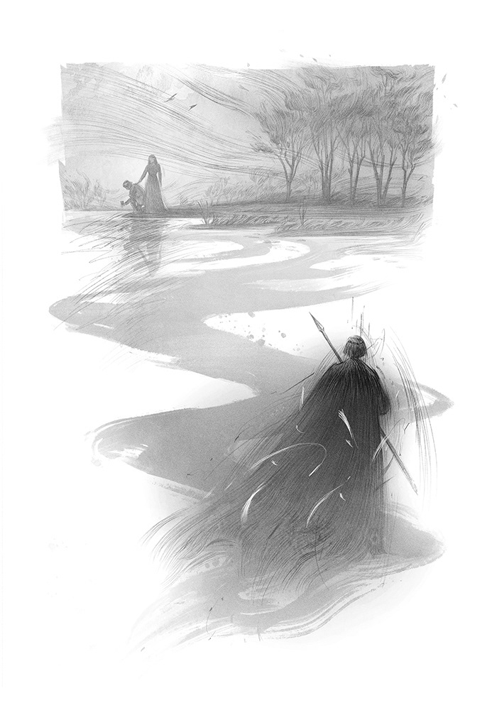 Cover and interior illustrations for Spear by Nicola Griffith.